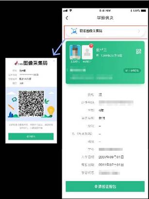 如您已獲取學信網采集碼,請點擊【掃碼識別/相冊識別】按鈕,識別您存放在手機相冊中的圖像采集碼,識別成功后會進入“核驗學籍信息”頁面,請輸入證件號后四位,將會解析出您的個人學籍等信息,即可進行畢業生圖像采集。如您手機中沒有保留學信網圖像采集碼或您還未登錄學信網獲取圖像采集碼,可點擊按鈕下方文字查看如何獲取圖像采集碼的教程。
