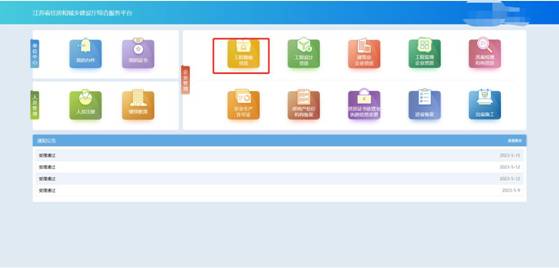 點擊首頁“企業管理”模塊中“工程勘察”圖標可進入工程勘察資質功能模塊頁進行相關業務維護和辦理。