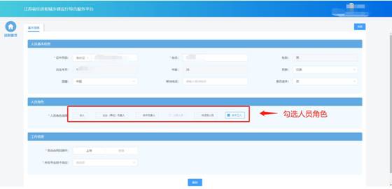 在“人員角色”板塊勾選人員對應的角色,并填寫角色對應的工作信息、