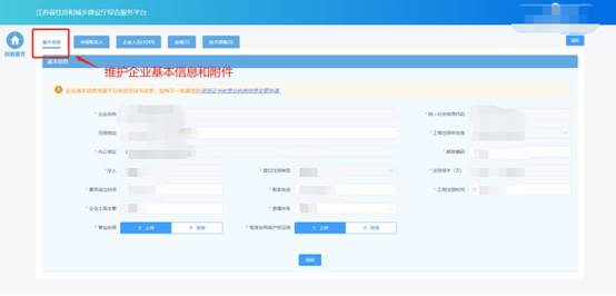 在基本信息頁面中填寫企業基本信息并上傳要求的附件。