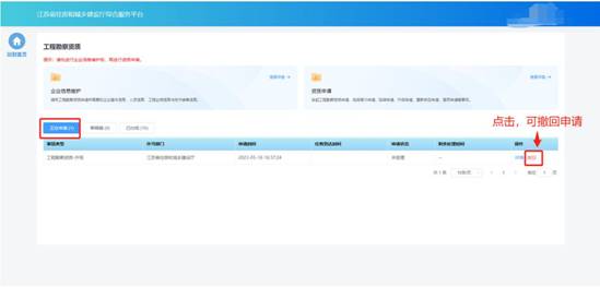 “正在申請”板塊中展示企業端已經提交的、目前處于審核流程中的事項申請。在管理端受理之前,企業端可點擊操作列中的“撤回”按鈕撤回事項申請。
