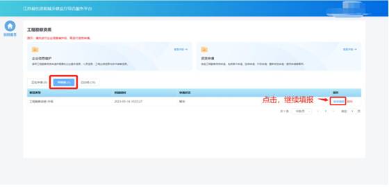 “草稿箱”板塊展示企業暫存的、未提交的事項申請,點擊列表記錄中