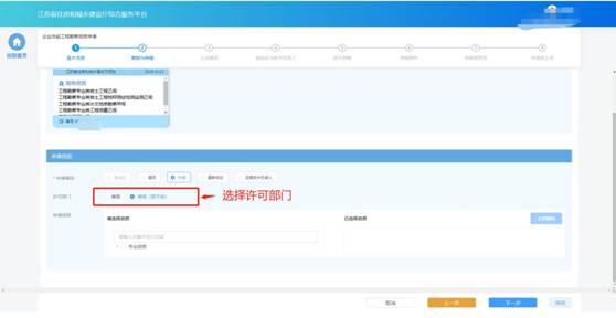 選擇許可部門,省級和省級(部下放)資質需分開申請。