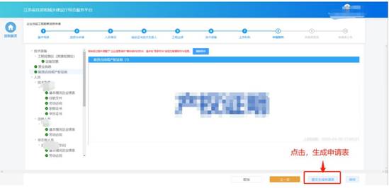 “申報附件”環節頁面展示本次申請相關的附件信息,部分附件信息來自于企業信息維護模塊維護的附件,部分附件來自于申報過程中在“上傳材料”環節上傳的附件。確認附件內容后,點擊“提交生成申請表”則系統自動生成申請表并進入申請表預覽頁面。