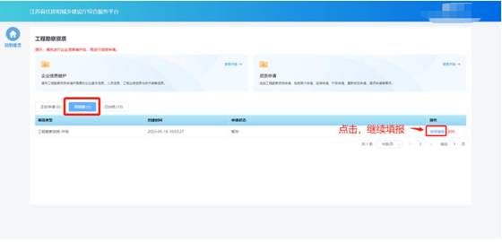 注:企業一次僅可發起一個工程勘察資質事項申請,只有當正在申請中