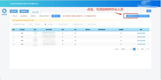 點擊“添加特種作業”按鈕,添加特種作業人員。