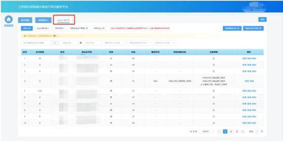 在企業人員頁面中維護企業人員信息。其中,三類人員信息來自江蘇省建筑業監管信息平臺2.0,無需企業手動添加。