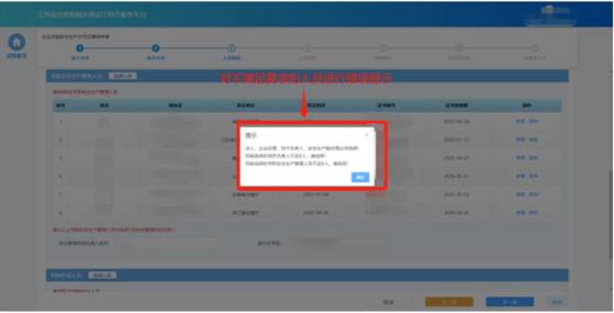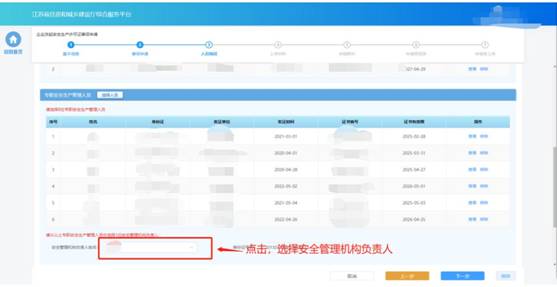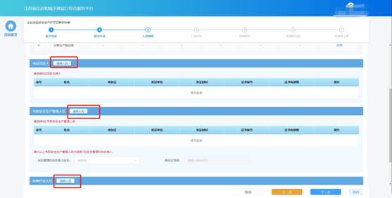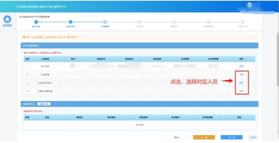 擇人員”按鈕分別選擇對應人員。選擇專職安全生產管理人員后,需要