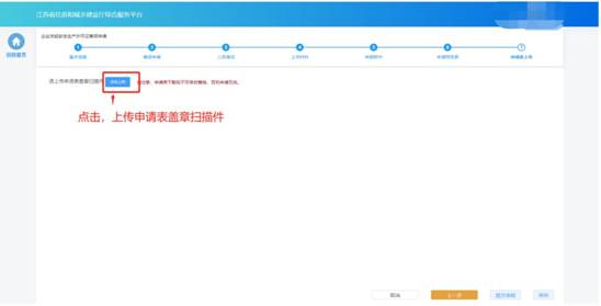 行蓋章,然后點擊“下一步”按鈕上傳蓋章掃描件。