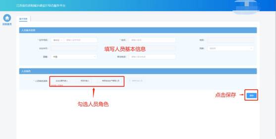 填寫人員基本信息、選擇人員角色,點擊“保存”新增人員后,可繼續