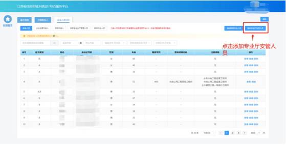 對于專業廳安管人員,可以由企業手動添加,點擊“添加專業廳安管人員”添加專業廳安管人員。