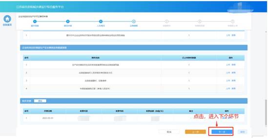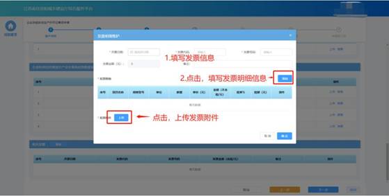 在“上傳材料”環節頁面上傳本次申請要求的附件并填寫發票信息,上傳完成后點擊“下一步”進入下一個環節。
