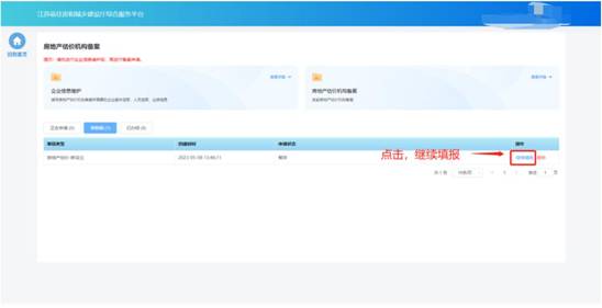 列表記錄中的“繼續填報”可進入申請頁面繼續填報。