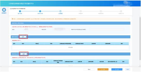 在股東/合伙人、評估專業人員模塊下點擊“選擇”按鈕分別選擇對應人員。