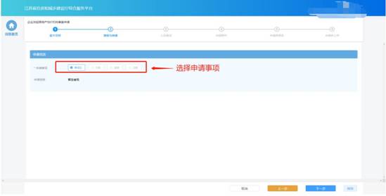 在“資質與申請”環節頁面,企業選擇申請事項。