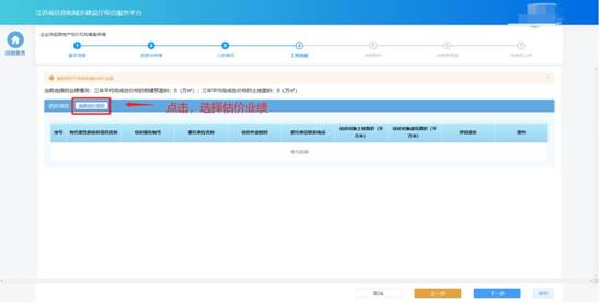 若申請的資質對于業績有要求,則申報流程會包含“業績”環節。在“業績”環節頁面選擇用于本次申請的估價業績,選擇完成后點擊“下一步”進入下一個環節。