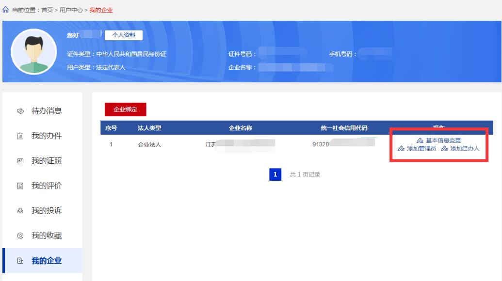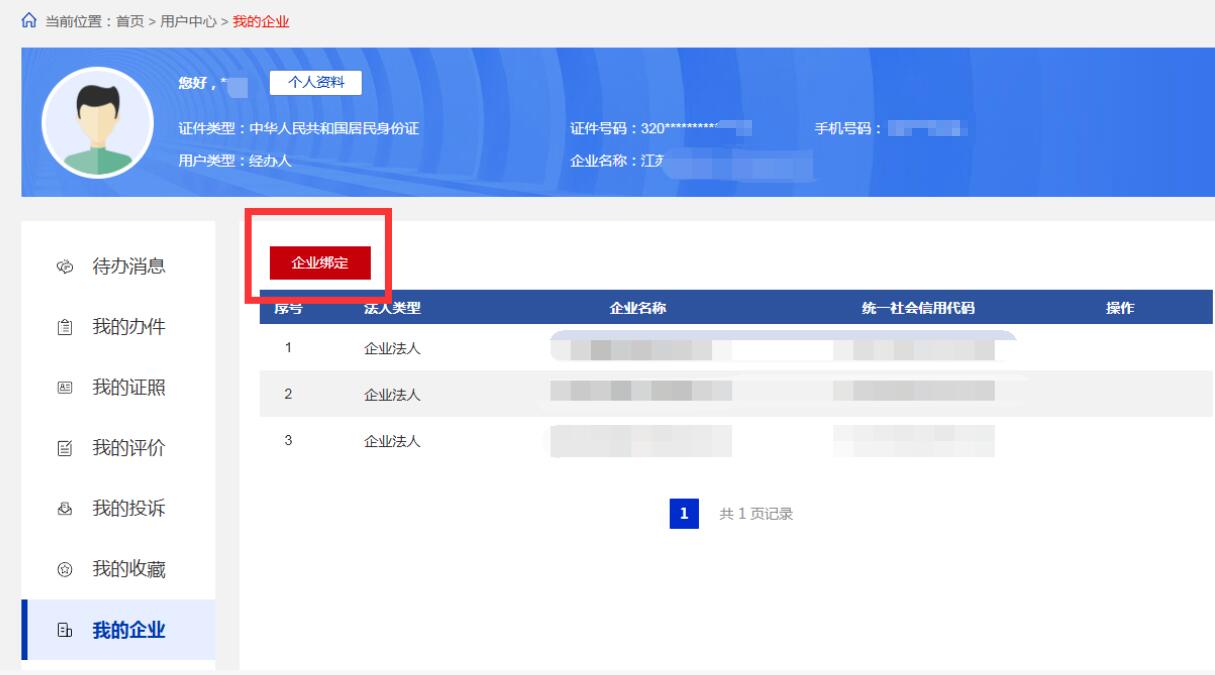 輸入企業(yè)相關(guān)信息以后,即可完成綁定,綁定后就能顯示企業(yè)信息。