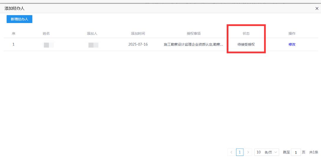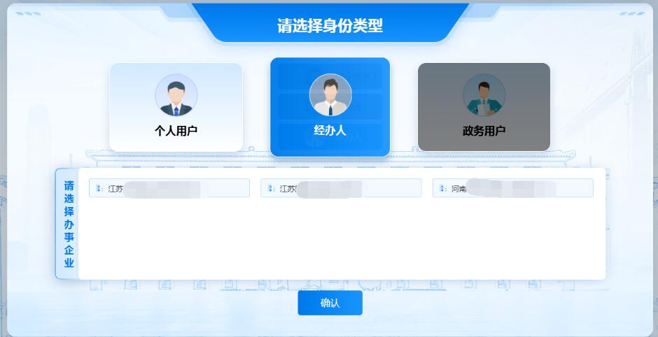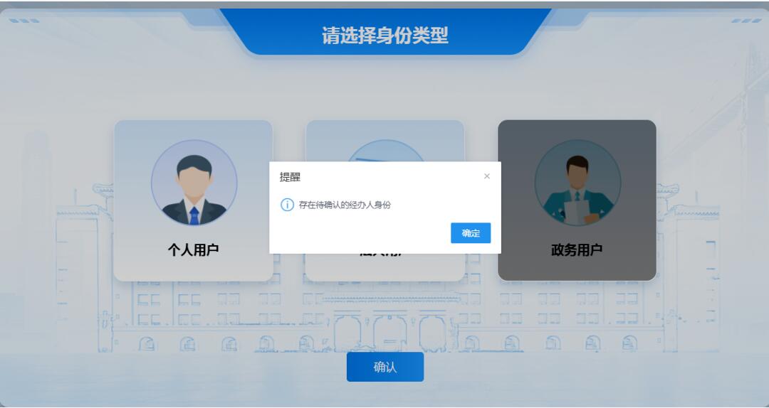登錄經(jīng)辦人賬號以后,會彈出“提醒”,存在待確認(rèn)的經(jīng)辦人身份。