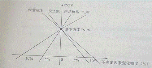 3.對(duì)某技術(shù)方案的財(cái)務(wù)凈現(xiàn)值(FNPV)進(jìn)行單因素敏感性分析,投資額、產(chǎn)品價(jià)格、經(jīng)營成本以及匯率四個(gè)因素的敏感性分析如下圖所示,則對(duì)財(cái)務(wù)凈現(xiàn)值指標(biāo)來說最敏感的因素是()。