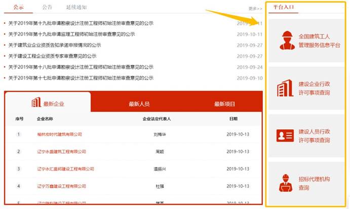 平臺入口引導:新增“全國建筑工人管理服務信息平臺”、“建設企業行政許可事項查詢”等平臺的入口,這是舊版沒有的功能。