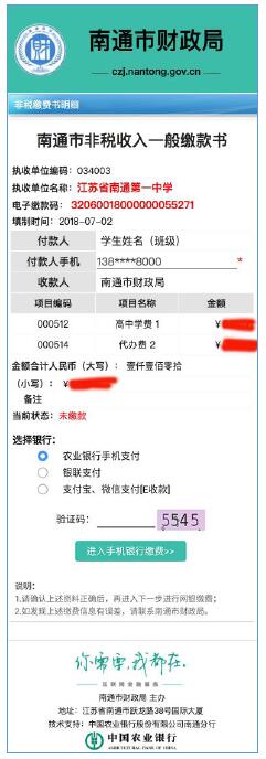 第一步:用微信、支付寶或農行掌上銀行掃描南通市財政局非稅收繳專網二維碼;