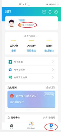 2.實名認證。二級注冊建造師本人通過手機下載“江蘇政務服務”APP,點擊“我的”→“立即登錄”,通過選擇“我要注冊”、“支付寶”、“我的南京”等方式進行注冊登錄,在姓名處下方點擊“實人認證用戶” →“用戶等級”內進行L4級別實名認證。