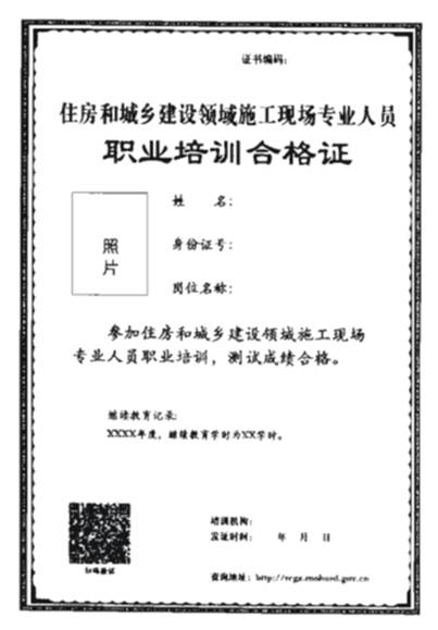 企業(yè)、職業(yè)院校和職業(yè)培訓機構(以下統(tǒng)稱培訓機構)按照“誰培訓、誰負責”的原則,對施工現(xiàn)場專業(yè)人員開展培訓、考核、發(fā)證。為保證培訓質量,推動各地培訓互認,培訓機構應依據(jù)統(tǒng)一的職業(yè)標準、統(tǒng)一的培訓大綱組織開展培訓,完成相應培訓后,須通過統(tǒng)一測試題庫對參訓人員進行測試。住房和城鄉(xiāng)建設行業(yè)從業(yè)人員培訓管理信息系統(tǒng)按照統(tǒng)一編碼規(guī)則(見附件1)為測試合格人員生成電子培訓合格證(見附件2),培訓機構或者測試合格人員可自行下載、打印。培訓合格證作為施工現(xiàn)場專業(yè)人員具備相應專業(yè)知識水平的證明,在全國住房和城鄉(xiāng)建設領域予以認可。地方各級住房和城鄉(xiāng)建設主管部門對本地區(qū)從事施工現(xiàn)場專業(yè)人員職業(yè)培訓的培訓機構進行監(jiān)督指導。我部根據(jù)行業(yè)發(fā)展需求,適時組織編修職業(yè)標準、培訓大綱及繼續(xù)教育大綱,建立并更新全國統(tǒng)一測試題庫,供各地免費使用。已開發(fā)建立題庫的省級住房和城鄉(xiāng)建設主管部門,可按要求申請將地方題庫納入全國統(tǒng)一測試題庫作為本地區(qū)培訓測試的補充。