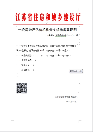 一級房地產(chǎn)估價機構(gòu)分子機構(gòu)備案證明