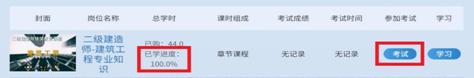 用戶完成在線課程學(xué)習(xí),取得本課程全部學(xué)時后,課程的“考試”按鈕高亮顯示,允許用戶進(jìn)行在線測試。